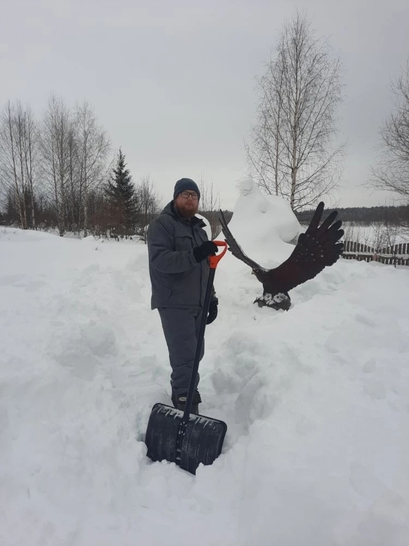 Не менее суровое испытание выпало на долю орла. Фигура птицы была выставлена под открытым небом прямо напротив музея природы. В последние дни уходящей зимы снегопады обрушились на заповедник с такой силой, что орла практически полностью замело. К счастью, на помощь вовремя подоспел заместитель директора заповедника Никита Бертош. Он провел оперативную «спасательную операцию» и освободил скульптуру из белого снежного плена до того, как тяжесть сугробов могла бы нанести ей урон.
